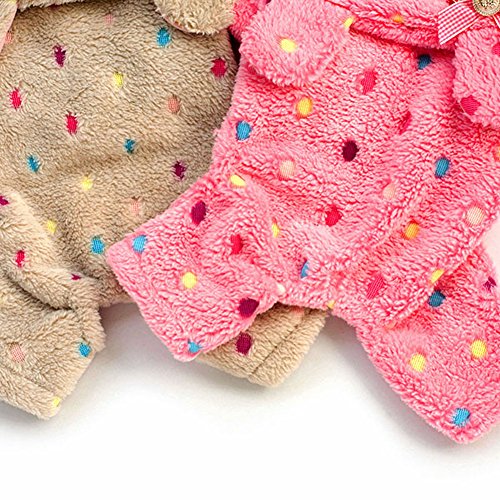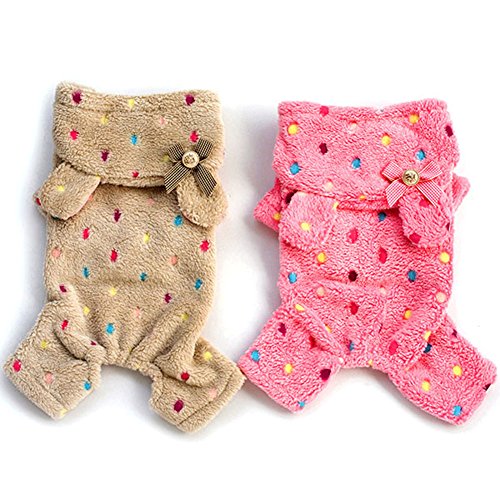 -. Feature : Item Includes: 1*1PC Pet Clothes / Color: Rose , Brown / Pattern: Polka Dots + Bowknot / Material: Fleece Blend / Note:All the size name is Asia size.It is smaller than US size.There is size details in "Product Description" on the page.