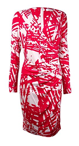 Calvin Klein Women's Long-Sleeve V-Neck Printed Side-Ruched Dress