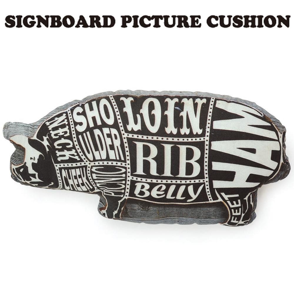お部屋のインテリアのアクセントに最適です。 製造国:中国 素材・材質:ポリエステル 商品サイズ:約W47×D11×L22cm 仕様:洗濯不可 ※サプライヤー直送品 ご注文後5~6営業日後の出荷となります【商品名】キーストーン サインボード ピクチャークッション ポークミート SIPICUPO