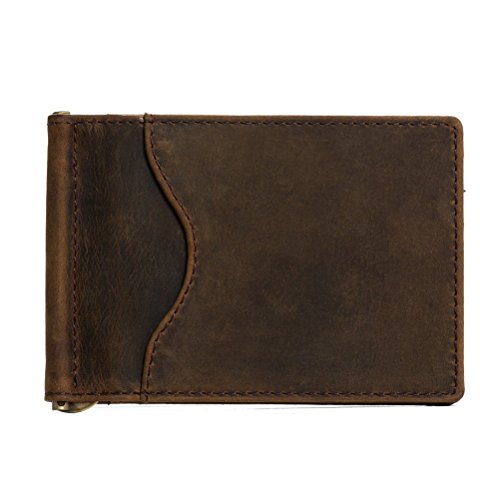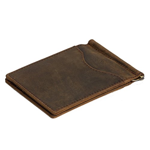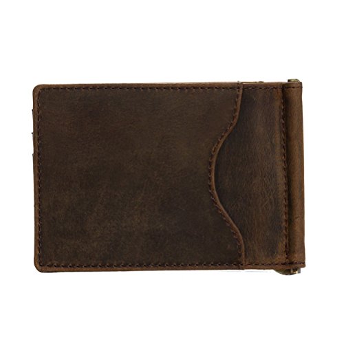 -. Title : YZL Retro Money Clip Wallet Crazy Horse Leather Front Arc Pocket Clamp for Money