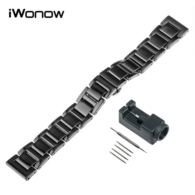 | [해외] 16 미리메터 18 미리메터 20 미리메터 전체 세라믹 손목 범용 스트레이트 엔드 시계 밴드 butterfly 버클 스트랩 손목 팔찌 블랙 화이트 + 도구 |