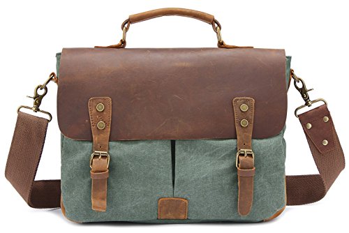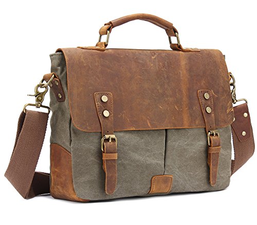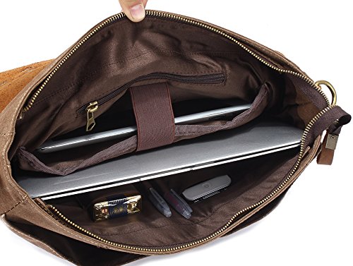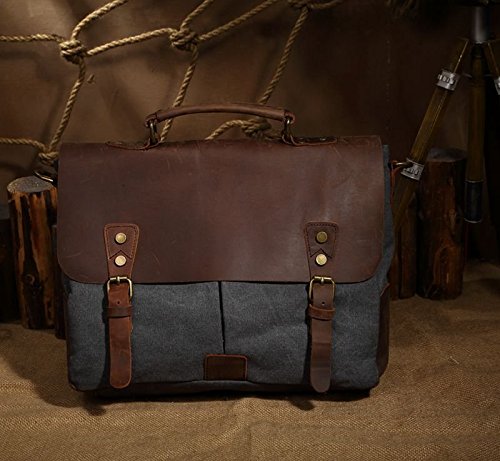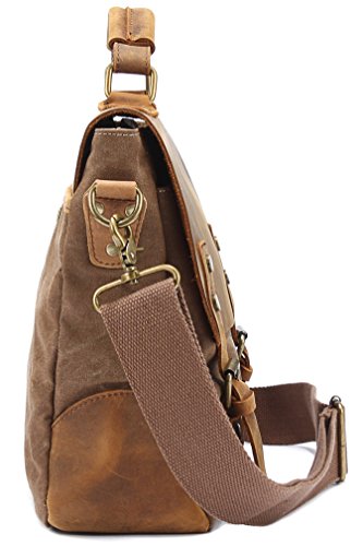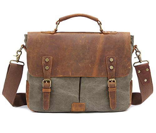 -. Brand : VANZ -. Feature : Top Quality Canvas Bag with Genuine Cow Leather Trim / Flapover design with buckle flap and magnetic closures is great for quick-access items / Leather top handle; Thicken shoulder straps which is adjustable with a buckle, antique finish brass metal buckles / Interior zip, wall and cell phone pockets and 2 large front pockets with strap & quick snap buckles / Large capacity. You can take Tablet PC(up to 14"), A4 magazine, portable textbooks, clothing, wallet, phone to this leather satchel bag -. ProductGroup : Apparel -. ProductTypeName : LAGE -. Title : VANZ Vintage Canvas Genuine Leather Messenger Bag Tote, Fit 14" Laptop