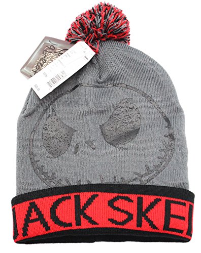 -. Title : Grey and Red Jack Skellington Adult Size Pom Beanie