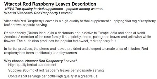 -. Title : Vitacost Red Raspberry Leaves -- 960 mg per serving - 100 Capsules