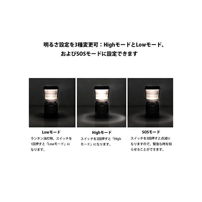 3모드 & 밝기 변경가 - 대휘도(300루멘)고, 50%휘도(150루멘)고, 점멸 모드(300루멘)의 다른 3개의 모드가 있습니다.스트라이프 패널 케이스를 채용 하고 있으므로,이 캠핑 라이트는 빛이 한 방향에 집중 하지 않고,炤를 느끼게 하지 않습니다