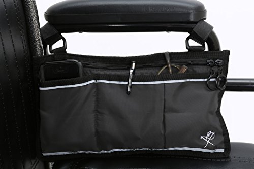 - Feature : 5 POCKET DESIGN - Allows options and flexibility for organizing your life / SIZE - The entire wheelchair Bag is 12.5 inches wide X 7 inches tall and is designed to expand an additional 2-3 inches when it is loaded with items. / DURABLE - Double-stitched seams and reinforced stress points. Designed to last a lifetime / WATER RESISTANT - The bag is crafted from 70-Denier DuroTec Nylon fabric and resistant to water. Protect your valuable from the rain. / REFLECTIVE - Two reflective stripes makes you visible from up to 100 meters at night.