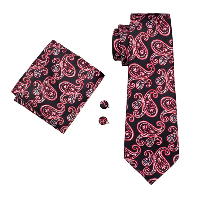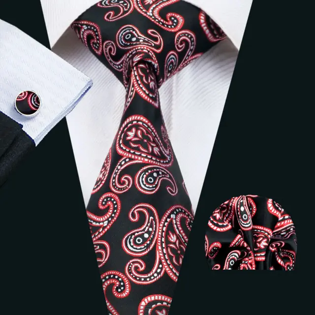 | [해외]LS-1412 배리. 좋아서 클래식 남성 넥타이 레드 페이즐리 100% 실크 넥타이 손수건 커프스 세트 남성 웨딩 파티 신랑 비즈니스 |