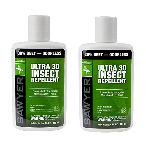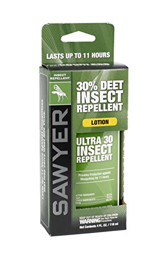 The non-greasy, odorless Ultra 30 Insect Repellent Lotion from Sawyer combines 30 percent DEET with a comfortable liposome base for up to 11 hours of protection against mosquitoes, ticks, flies, chiggers, fleas, and no-see-ums. It's comfortable for use in the backcountry or in the backyard.