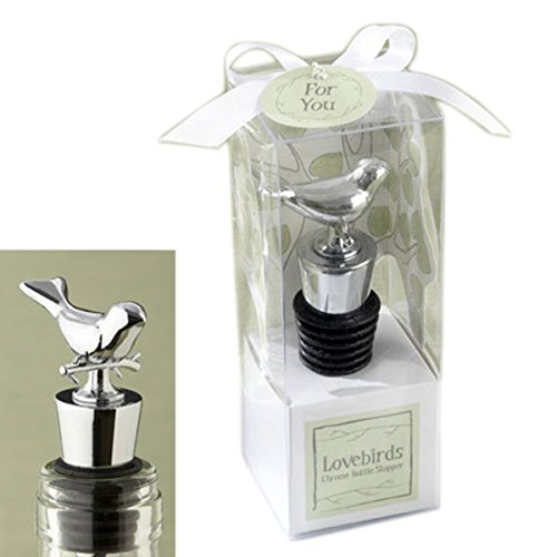 -. Feature : Bottle Stopper Measures 3 1/2-inch (Height) by 1 1/4-inch (Width). / Lovebirds Chrome Bottle Stopper between two delicate, brown branches, and on top of the box is a white-satin bow and a matching "For You" tag. / Clear gift-box design surrounds the lovebird with a clever, cutout tree bursting with heart-shaped leaves. / Gift Box Measures 4 1/2-inch (Height) by 1 1/2-inch (Width) by 1 3/4-inch (Depth). / Nice looking & ideal as a wedding gift.