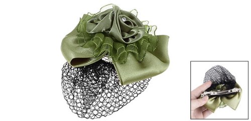 - Title : Women Rhinestone Decor Green Bow Tie Design Barrette Hair Clip w Snood Net
