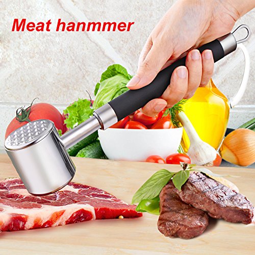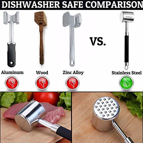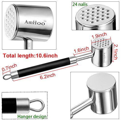 Product Description Release your inner master chef Are you tired of tough steak or chicken schnitzel? This AmHoo 18/10 Stainless Steel mallet is the best ANSWER for you.