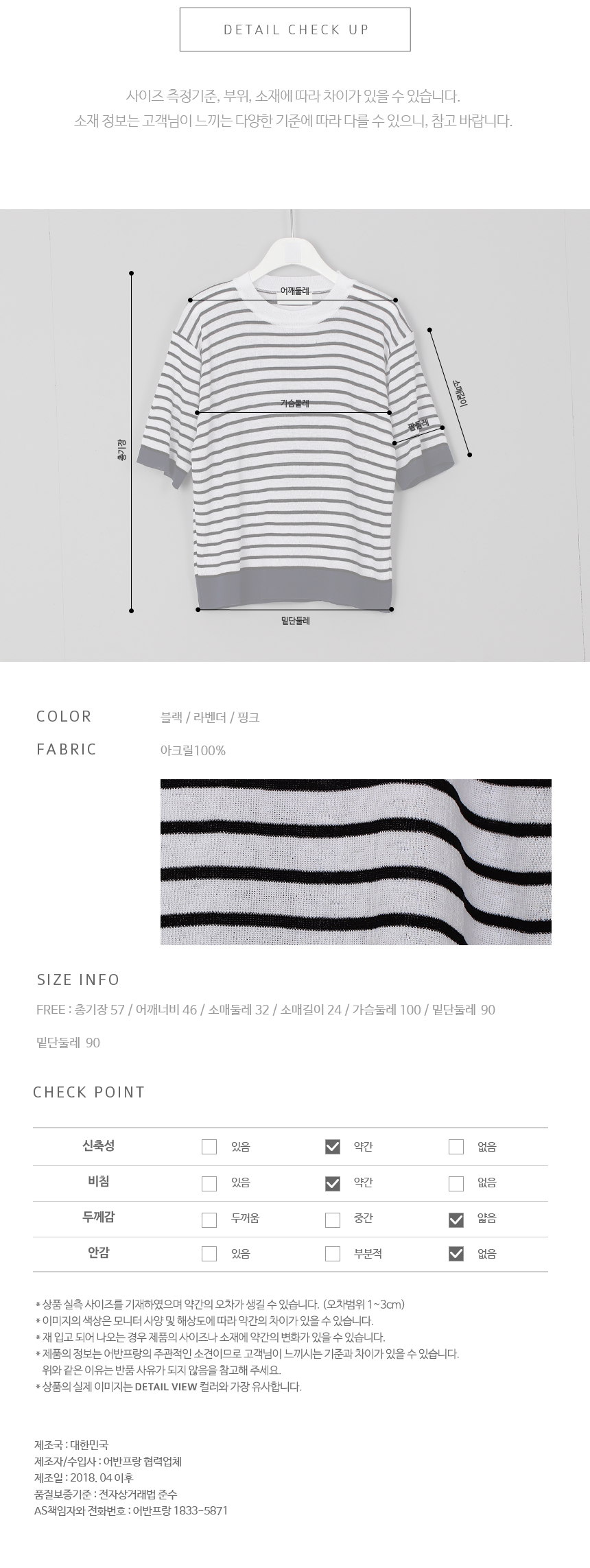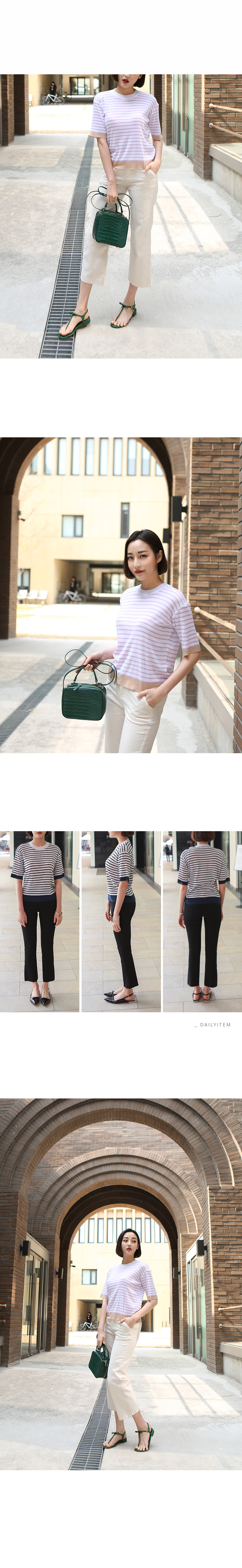 목선과 밑단의 배색으로 단정한스트라이프 배색 니트에요시원한 여름원사의 성근 짜임으로 한여름까지시원하게 입기 좋은 데일리 니트랍니다스트라이프와 밑단의 배색컬러를 달리한컬러감이 눈에 띄는 아이템으로 자연스러운네추럴핏과 함께 자주 손이갈 여름 니트에요색상은 (스트라이프컬러기준)블랙, 라벤더, 핑크사이즈는 FREE 44~66▼ 관련상품 : 제로핏 부츠컷 텐션 팬츠린넨터치 일자핏 코튼 팬츠