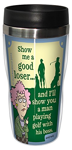 Tree-Free Greetings 16-Ounce Sip 'N Go Stainless Lined Travel Mug, Aunty Acid Golf With Boss (SG78472)