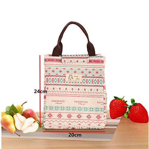 Yahead Lunch Bag Cute Reusable Portable Linen Cotton Insulated Lunch Bag Tote Lunch Soft Bento Cooler Carry Outdoor Picnic Food Bag (Flower)