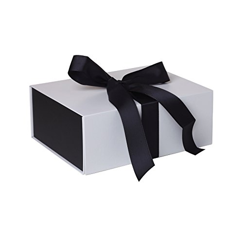 2-count medium white matte presentation boxes with black taffeta ribbon