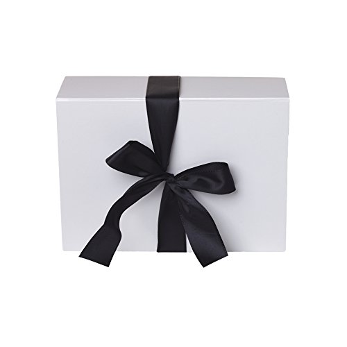 Jillson Roberts 2-Count Medium Ribbon-Tie Gift Boxes Available in 4 Colors, White Matte with Black Ribbon