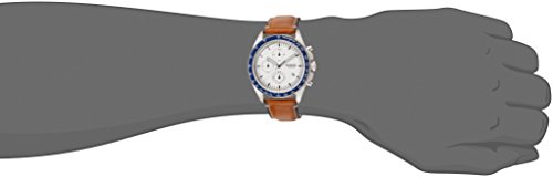 NEW PLTFORM의 스포츠54.화이트다이얼로,베젤이 훌륭한블루.라이트 브라운의 레더 스트랩은 싸이드의 블랙이 액센트./10기압 방수 성능/크로노그래프 기능/날짜 표시/팔 주위(최대) 약20.5cm