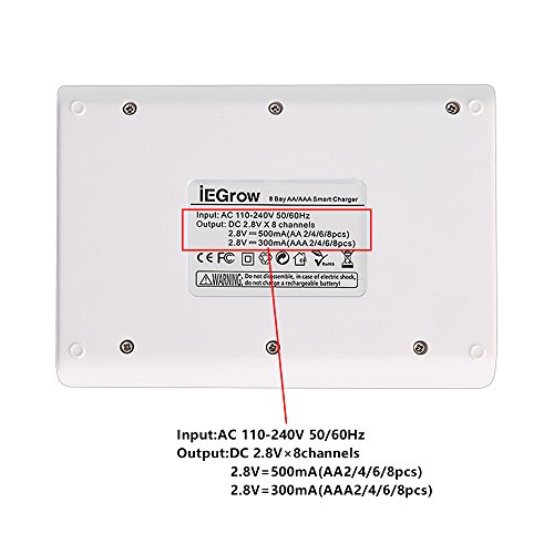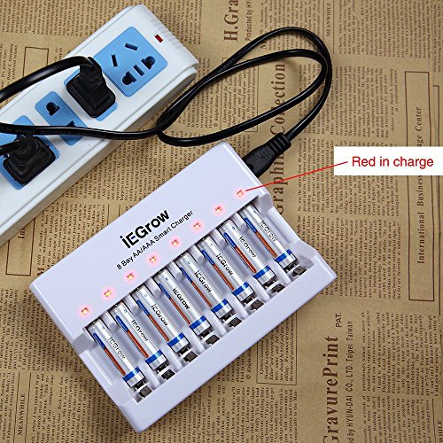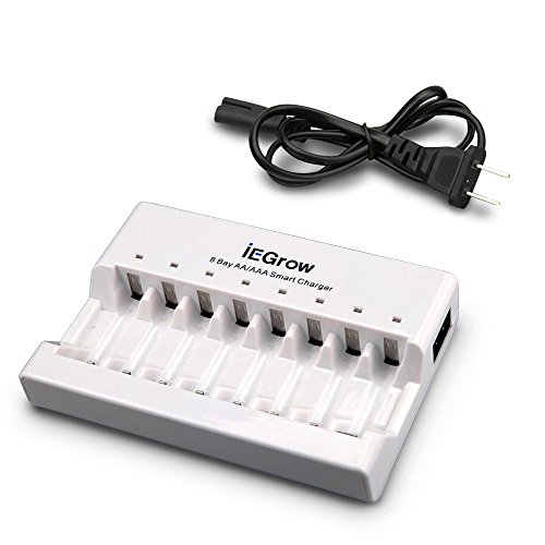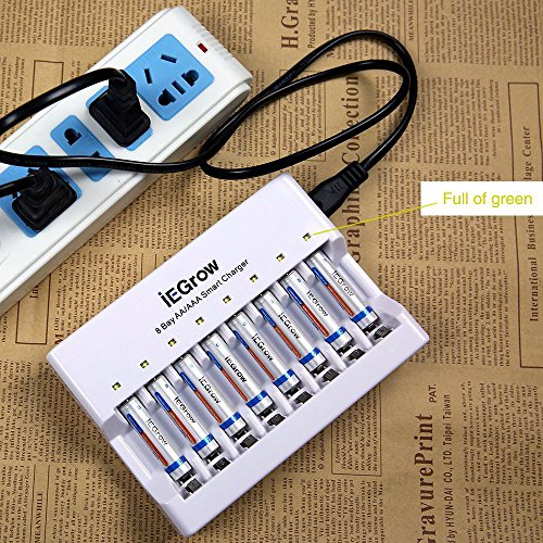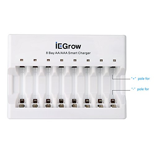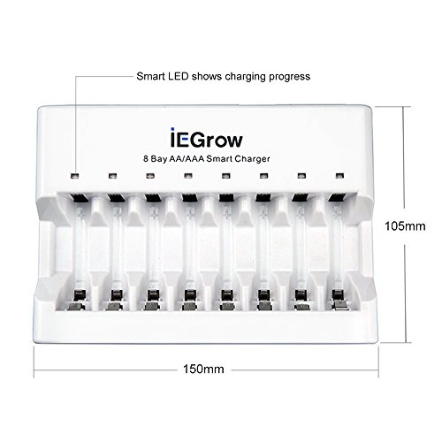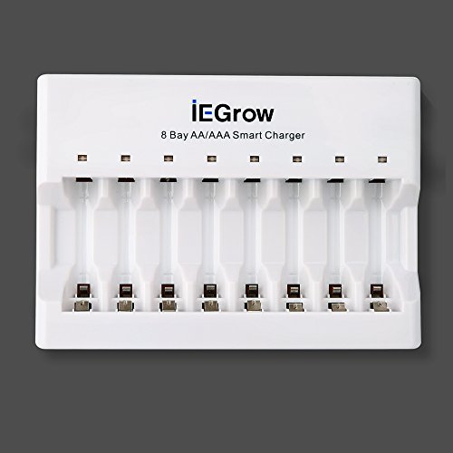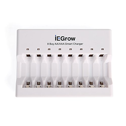 iEGrow 8-Bay AA AAA Battery Charger for Ni-MH Ni-CD Rechargeable Household Batteries with LED Indicator