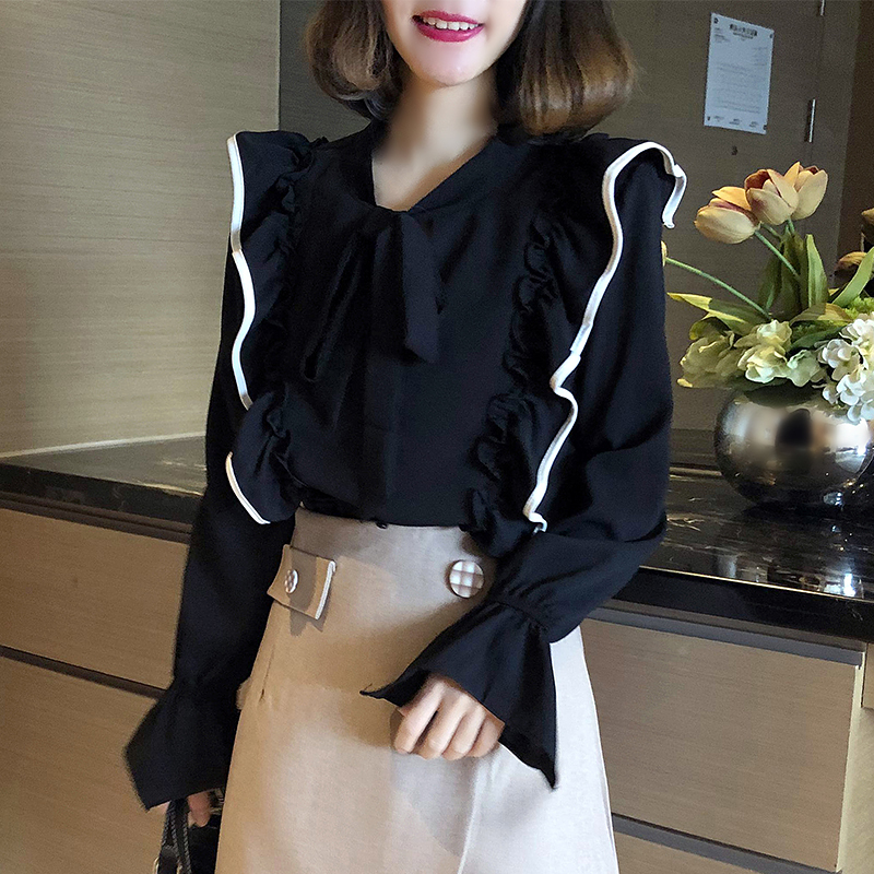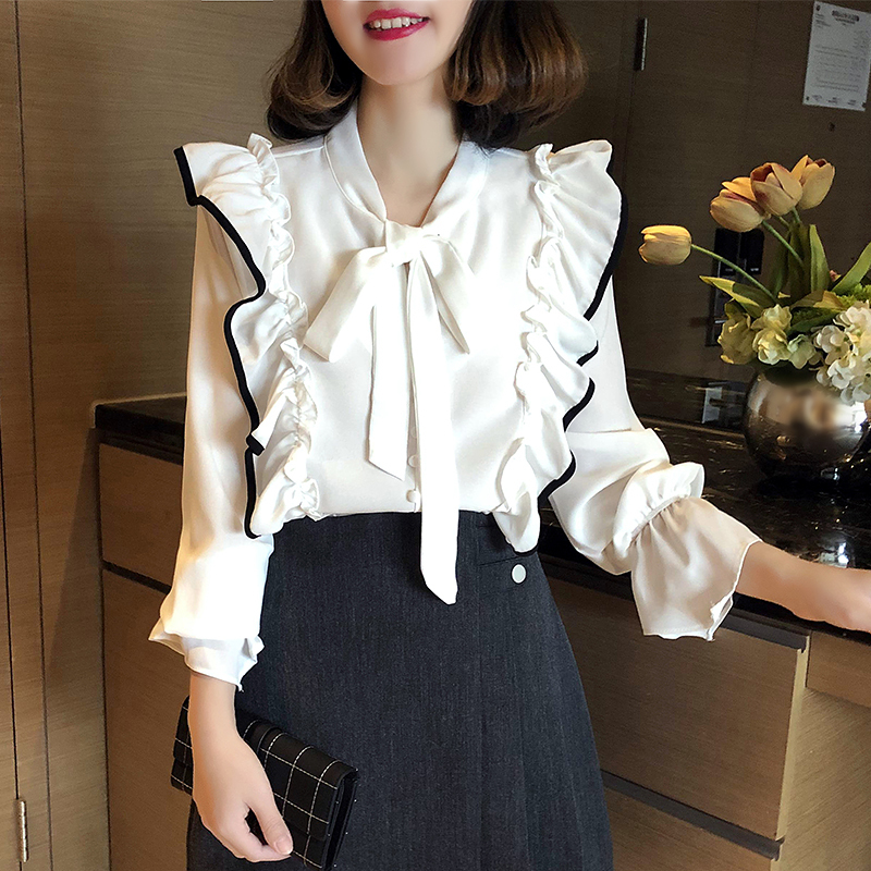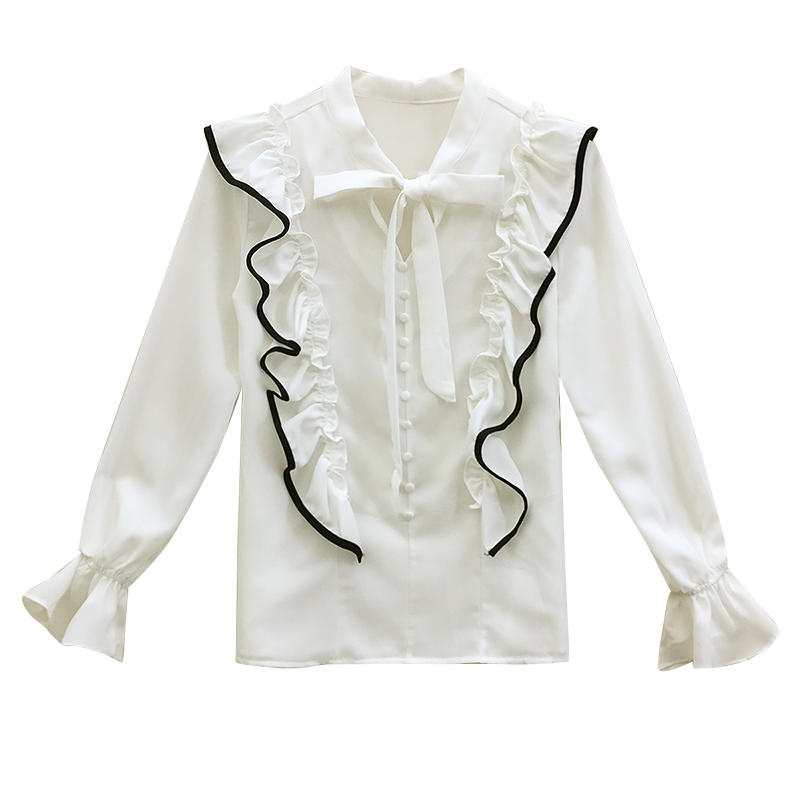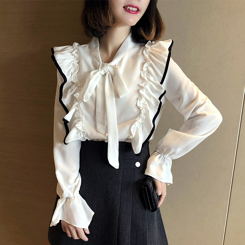 シャツ 長袖 ブラウス ボウタイ フリル フリル袖 キュート かわいい