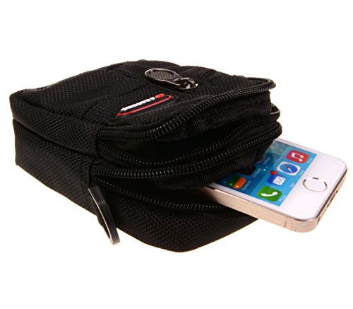- Feature : Compatible with iPhone5/5S/5C iPhone4/4s ,Samsung Galaxy s3,s4 / Size: 3.5(L)inch * 1.5(TH)inch * 5(H)inch Weight:0.01KG / High quality tough and durable nylon material; three zipper pockets provide enough room to hold your phone,some change,keys and credit cards.Extreme overall back and front protection keep your phone from scratches / The three zipper closure with a velcro cover on the front can close this pouch very well, which also makes the whole pouch very convenient and safe / Detachable hand/waist strap can be adjust to the leghth you like and unique design provide you with fashion appearance