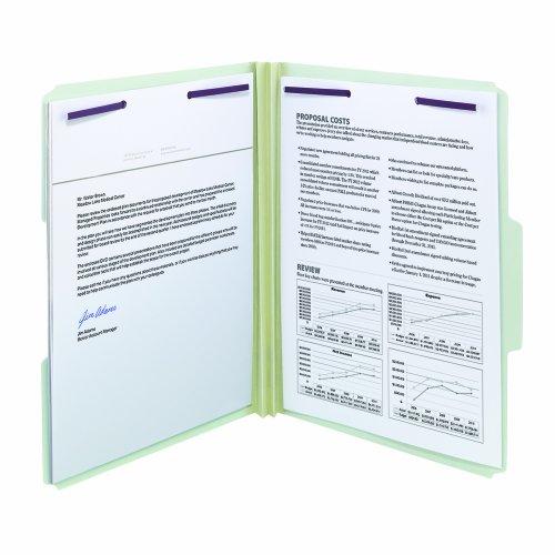 -. Title : Smead Pressboard File Folder with SafeSHIELD® Fasteners, 2 Fasteners, 1/3-Cut Tab, 2" Expansion, Letter Size, Gray/Green, 25 per Box (14934)