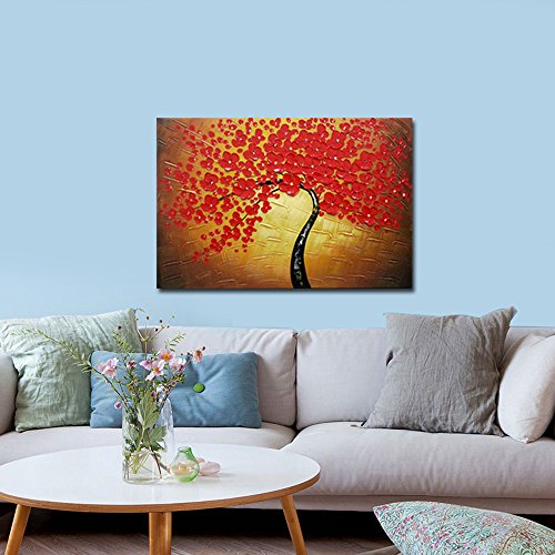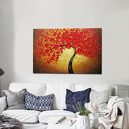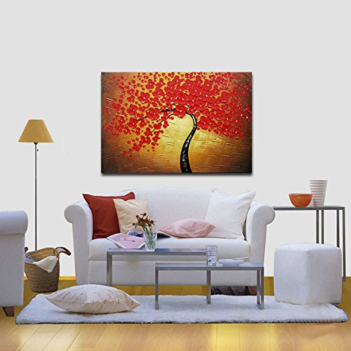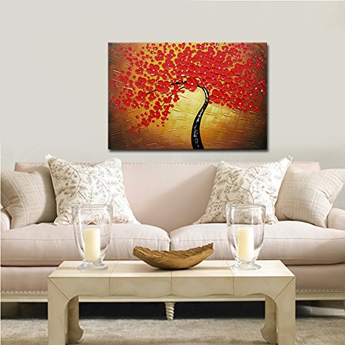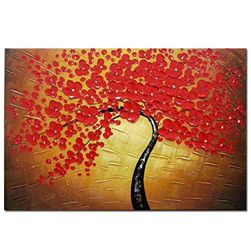 -. Title : Wieco Art - Red Flowers Modern Floral 100% Hand Painted Oil Paintings Artwork on Stretched and Framed Canvas Wall Art Ready to Hang for Home Decorations