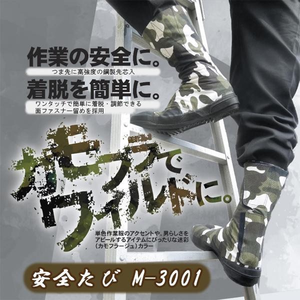 建築・建設・造園作業などに!!つま先には高強度の鋼製先芯入り。ワンタッチで着脱簡単の面ファスナー式を採用。単色作業服のアクセントや男らしさをアピールするアイテムにぴったりな迷彩柄です。 |