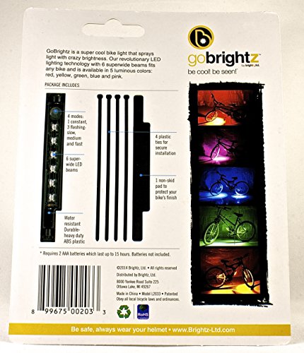 Studio : Bike Brightz Publisher : Bike Brightz Binding : Misc. Product Description Bike Brightz are the newest big thing in biking accessories. Looking to impress your friends, and be safer at the same time? Look no further. Bike Brightz are affordable, easy to install, and guaranteed to turn heads. 0