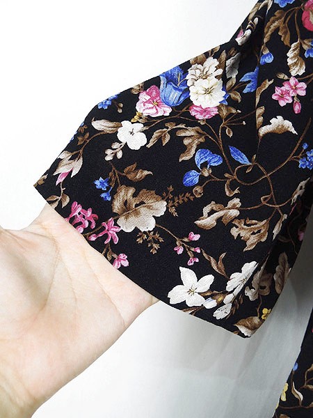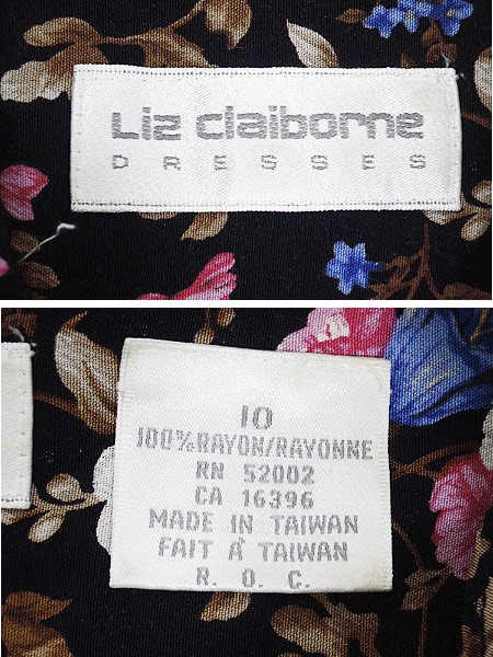 Ladies ブランドLiz claiborn リズクレイボーン カラー黒ベース メール便不可 コンディション★★★ 素材レーヨン 表記サイズ10 スタッフコメント裏地無し。右袖後ろ、後左裾付近穴あきあり。後ヒップ下付近に糸引き擦れ感あり。 実寸サイズ 着丈 119 cm 身幅 45 cm 肩幅 41 cm 袖丈 25 cm ウエスト 34 インチ( 86 cm) ※ウエスト・ヒップ以外は平置き採寸