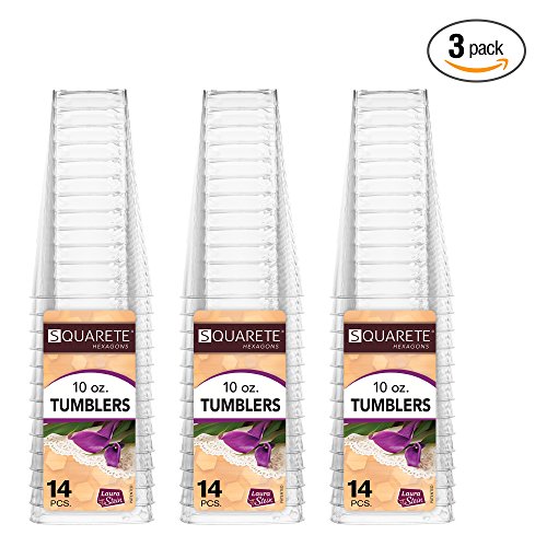 Squarete Hexagons Crystal Clear Hard Plastic 10oz Square Party Tumblers/Cups 14 Count Pack Of 3 (42 Cups Total)