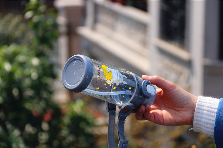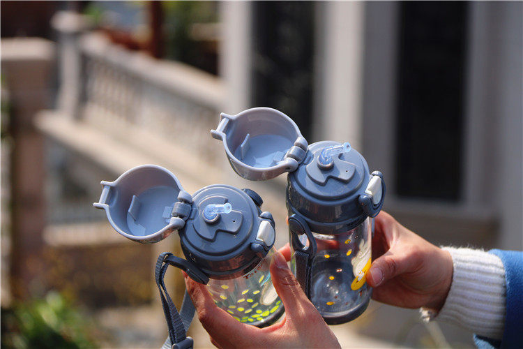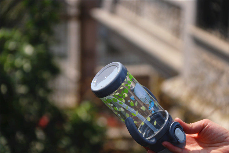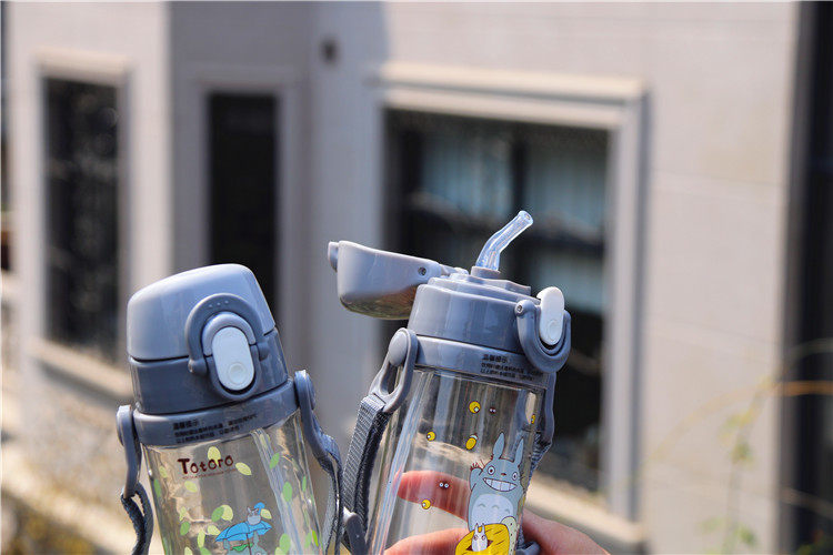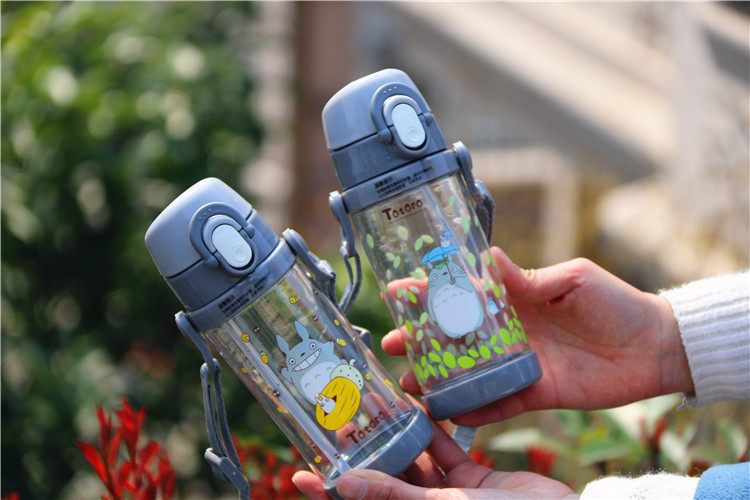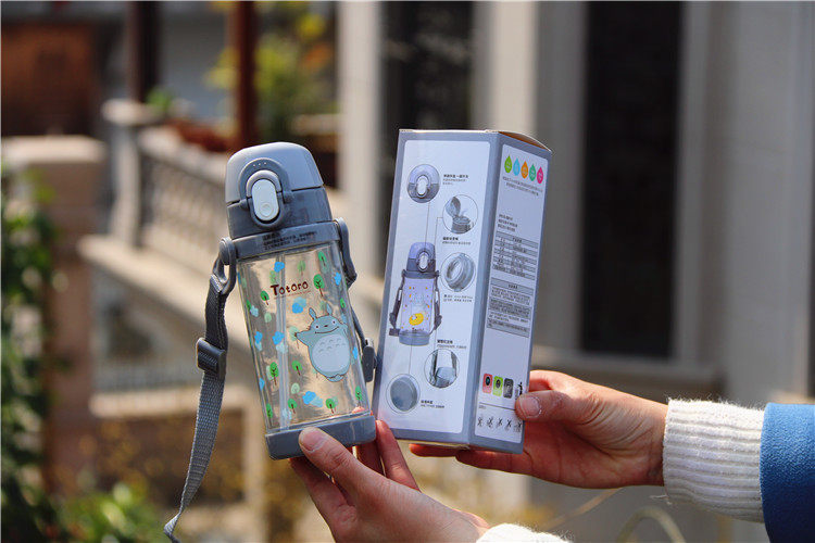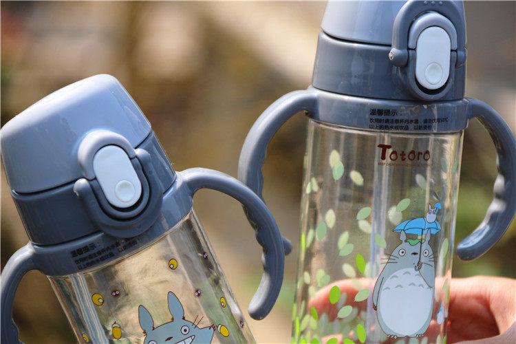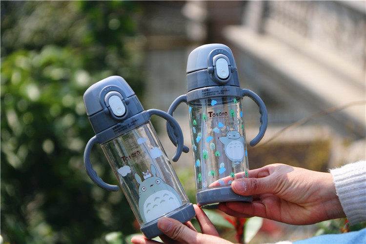 可爱龙猫吸管杯防漏带盖带手柄宝宝饮水杯卡通儿童学生户外小水壶