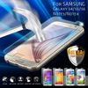 3. Tear off the release liner (film) from the Tempered glass. Carefully direct the glass at each hole site (home button & camera eye) and edge of the Mobile screen. Then lay the Tempered glass down slowly.
