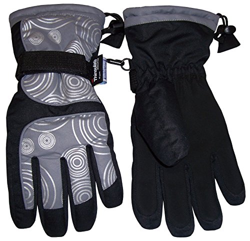Binding : Apparel Product Description N'Ice Caps TM boys Thinsulate waterproof curcle scroll digital print taslon ski glove. Has sire grip palm, swirling piping on back of hand shell, adjustable gauntlet with lock, Thinsulate and waterproof inner lining. Outer lining: poly fleece. Available in 3 sizes. One size fits 2-4yrs (4" wide across palm, 6" from elastic wrist to end of middle finger.) One size fits 4-7yrs (4.25 wide palm, 6.5" from elastic to end of middle finger.) One size fits 8-12 yrs (4.5" wide across palm, 7.25" from elastic wrist to end of middle finger.) Color: black/charcoal. This product has been tested and approved as per CPSIA standards. 0
