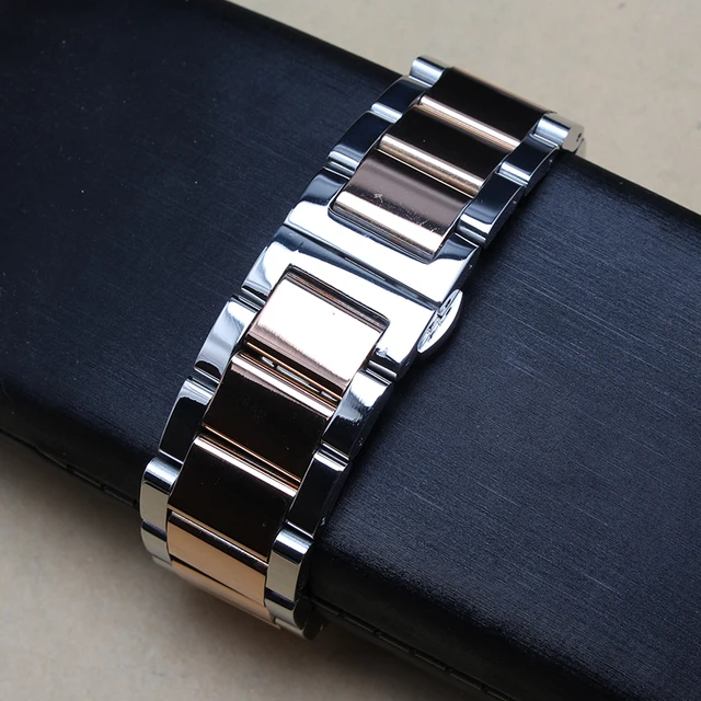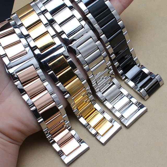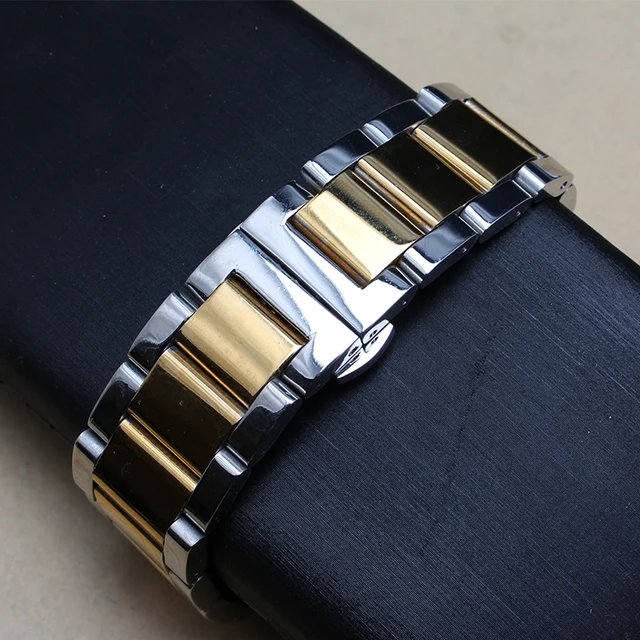 상품 내용 광택 밝은 시계 스트랩 18 미리메터 20 미리메터 22 미리메터 골드 솔리드 스테인레스 스틸 시계 밴드 스트랩 팔찌 나비 버클 시간