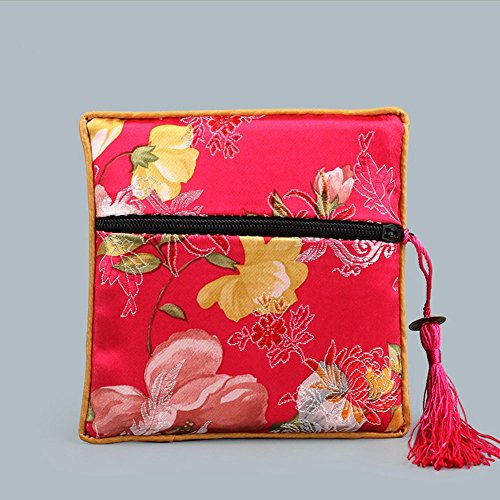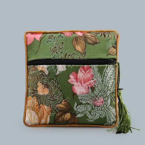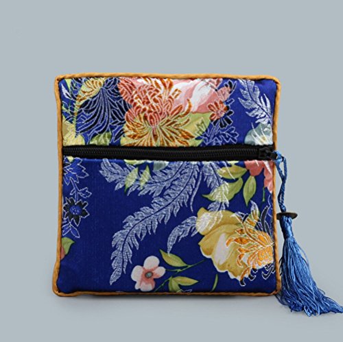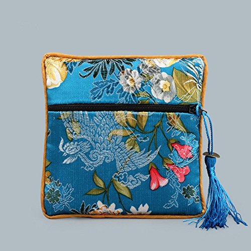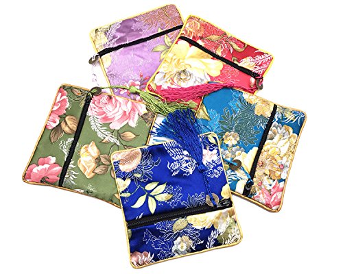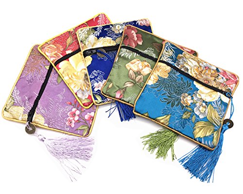 5 Pcs Chinese Silk Brocade Embroidered Jewelry Pouch Bag Coin Purses Gift Bag Zipper Pocket (Green#Dark blue#Blue#Purple#Hot pink)