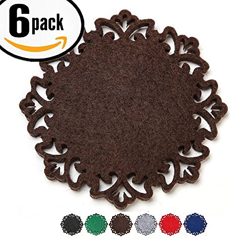Lace Cut Felt Coasters Set of 6 Large 4.5 Inch Size,6 colour