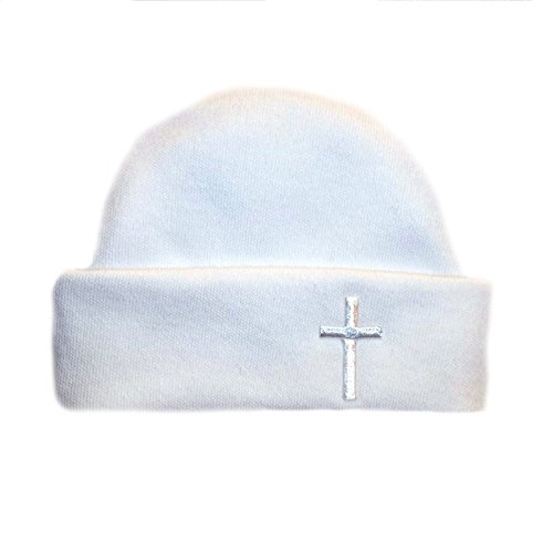 Binding : Apparel Product Description Sweet christian unisex baby hat with white cross. 100% soft cotton knit. Perfect addition to your baby's Christening, Baptism or Blessing Ceremony. 5 sizes from micro preemie to 6 months. Micro preemie for babies weighing 0-3 pounds; preemie for babies weighing 3-6 pounds; small newborn for babies 5-8 pounds; 0-3 Months for babies weighing up to 12 pounds and 3-6 months to 16 pounds. Handmade with love, in the USA, by Jacqui's Preemie Pride, Inc. Enjoy your new baby. 0