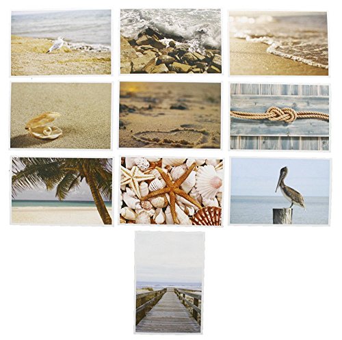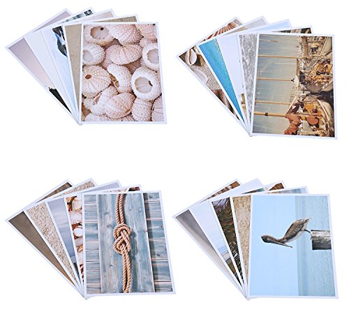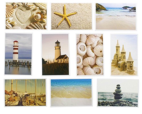 Nautical Beach Seaside Postcards - 20 Glossy Postcards - Bulk Set - Featuring Boats, Lighthouses, Sea Shells, Sand Castles - 4 x 6 Inches