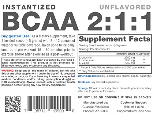 125 Grams (4.4 oz), BCAA 2:1:1 Instantized Powder with Scoop Included