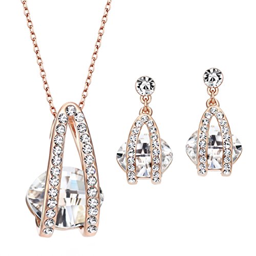 원본상품명: (ネオグロリ?)Neoglory Jewelry ホワイト SWRAROVSKI スワロフスキ?クリスタル ピンクゴ?ルド スタッドビアス ペンダントネックレス ジュエリ?セット アクセサリ?