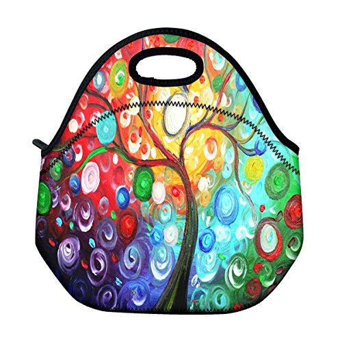 ICOLOR Colorful Tree Insulated Neoprene Lunch Bag Tote Handbag lunchbox Food Container Gourmet Tote Cooler warm Pouch For School work Office
