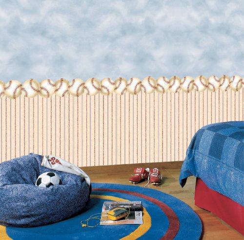 York Wallcoverings BT2888B Baseball Border, White/Soft Tan/Barn Red