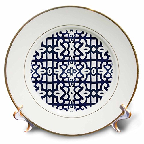3dRose cp_29752_1 Abstract Fleur De Lis in Blue-Porcelain Plate, 8-Inch