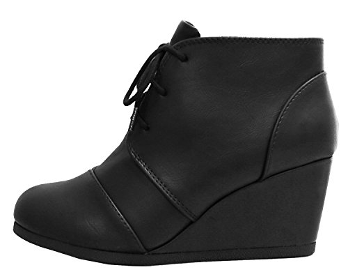 Cambridge Select Women's Lace Up Wedge Heel Ankle Bootie