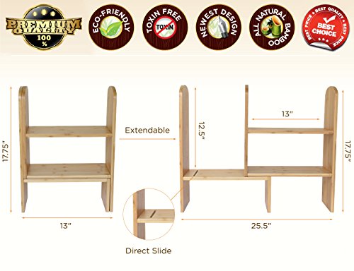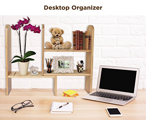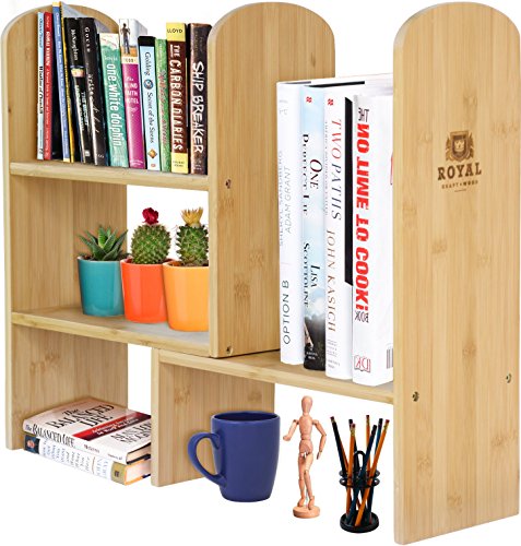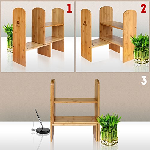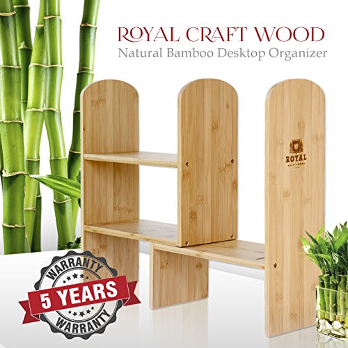 ROYAL CRAFT WOOD Natural Bamboo Desktop Organizer - Expandable, Adjustable Office Desk Accessory - Multipurpose Display Shelf Rack To Be Used As Office, Kitchen, Flower, Book Organizer