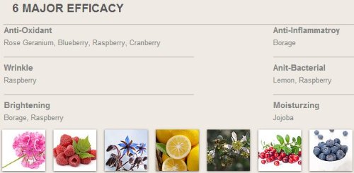-. Feature : Anti-Oxidant Pomegranate, Borage, Blueberry, Raspberry, Cocoa, Safflower / Wrinkle Cocoa, Safflower / Anti-inflammatory Aloe Vera, Grape / Moisturizing Cocoa, Aloe Vera / Anti-Bacterial,Whitening, Grape