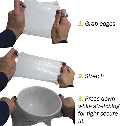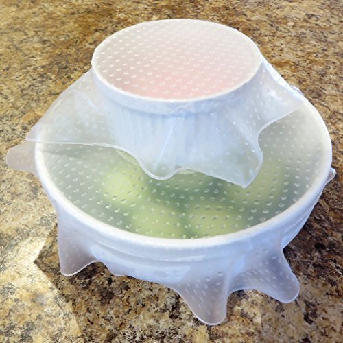 Keep your food lasting longer and tasting fresher with this 4 pack of reusable BPA free silicone stretch lids for containers.