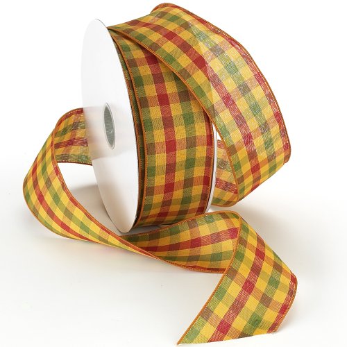 Morex Ribbon Hayride Wired Plaid Fabric Ribbon, 2-1/2-Inch by 50-Yard Spool, Pumpkin