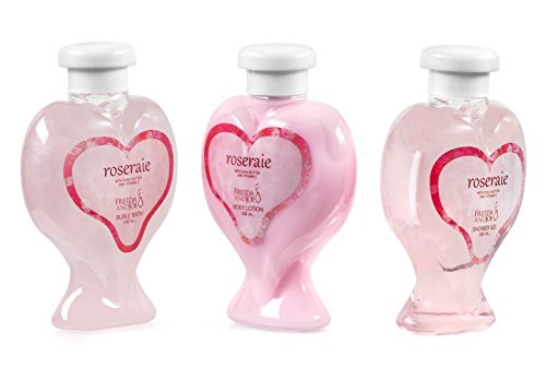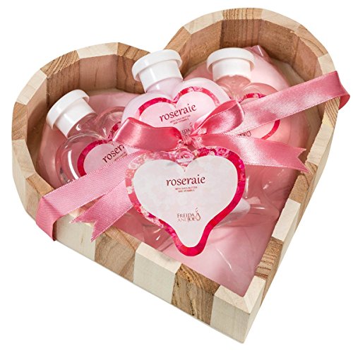 -. Feature : This Rose bath and body spa set comes in a tone natural wood heart shape basket. The basket can be used as a holder for goodies flower, and décor. / Contents: 100ml shower gel ,100ml bubble bath, 100ml body lotion ribbon & tag / Color : Pink / natrual wood / About Fragrance: The classic pink rose, depicting Victorian are and decoration, symbolizes gratitude and admiration. These blushing beauties; sentimental for gentleness and affection, are always appreciated for romantic occasions. Silky rose pink petals, delicate and feminine will ensure a joyful and happy bath experience. / Fragrance Notes: Top: geranium, ozone, galbanum, cyclamen, rose, bergamot. Middle: muguet, ylang ylang, jasmine, violet, orange flower, fruity. Base: musk, cedar, amber