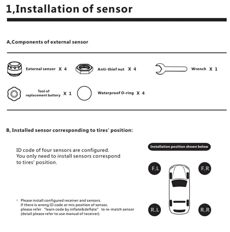 -Set up sensor: learn new sensor ID code when replace sensor